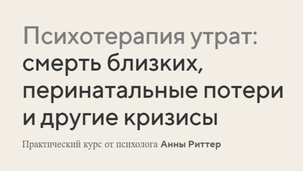 Курс Психотерапия утрат: смерть близких, перинатальные потери и другие кризисы, автор Анна Риттер. Тариф Слушатель