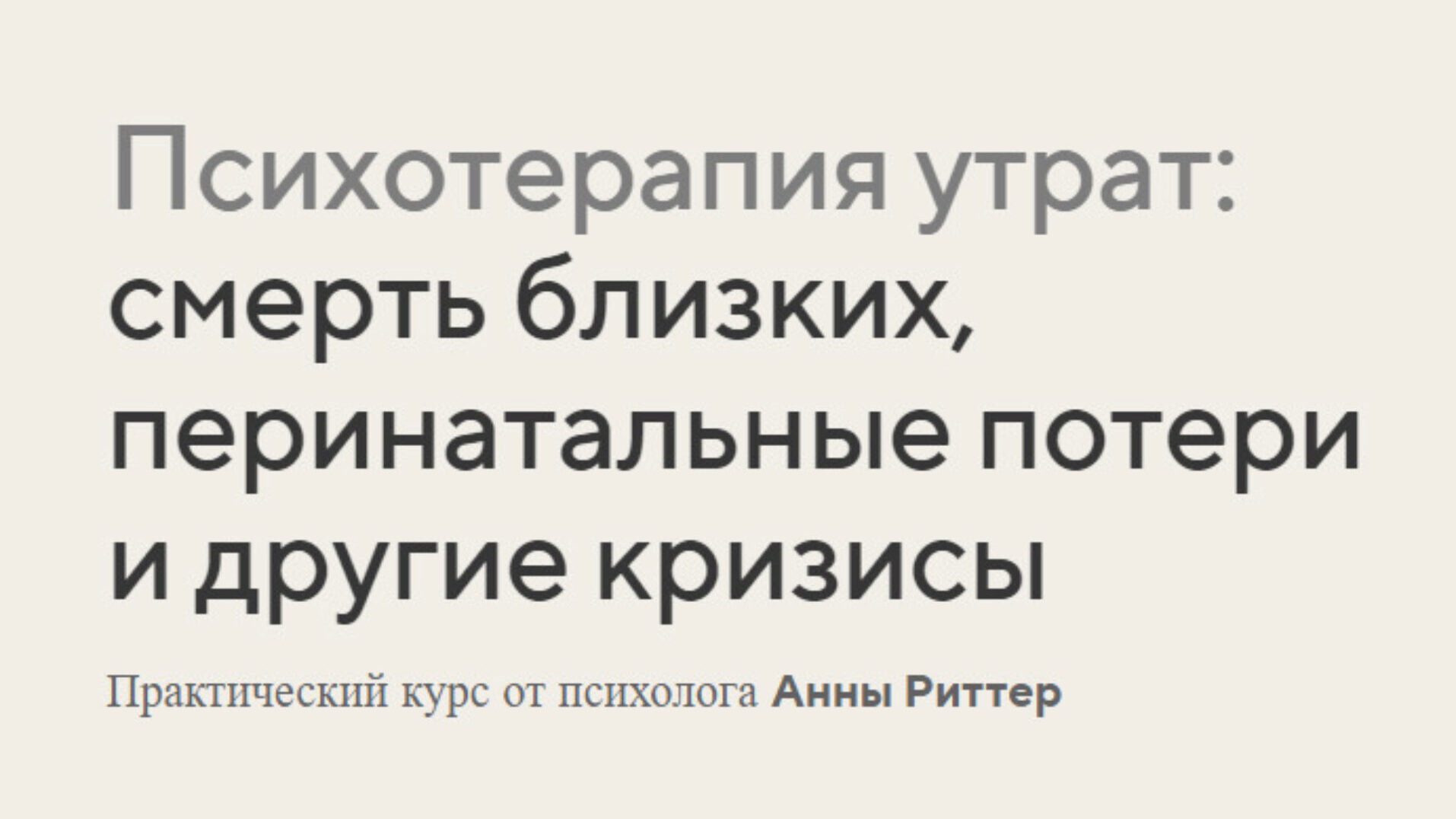Отзывы о курсе «Психотерапия утрат: смерть близких, перинатальные потери и другие кризисы» от Анны Риттер