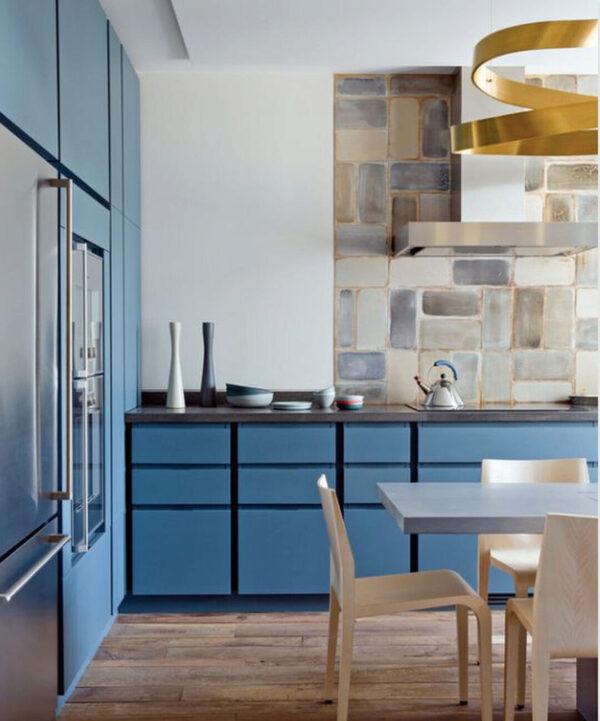 - Материалы, применяемые в кухонной мебели (фасады, столешницы, фартуки) и в отделке помещения (полы, стены).
