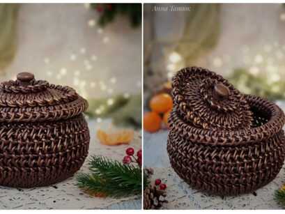Этот совместник подойдет как для новичков так и для опытных рукодельниц Его проходили творцы, которые впервые в жизни держали трубочки и прикасались к способу корневого плетения. Там мы прошлись по всем азам плетения. На данном совместнике вы сможете сплести как сам горшочек от и до так и крышечку.