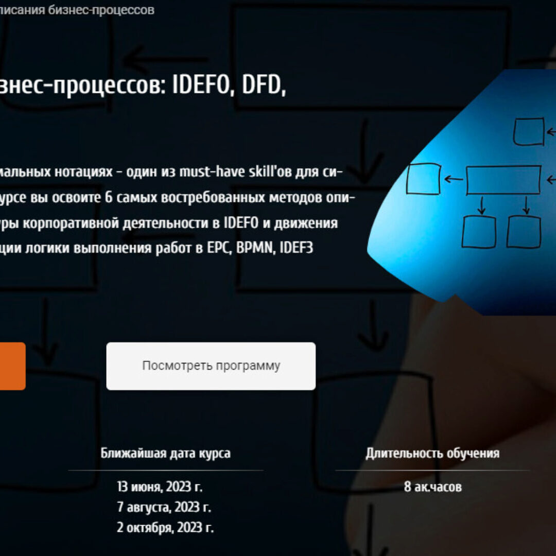 Описание бизнес-процессов в формальных нотациях - один из must-have skill'ов для системного и бизнес-аналитика. На курсе вы освоите 6 самых востребованных методов описания бизнес-процессов: от структуры корпоративной деятельности в IDEF0 и движения потоков данных в DFD до детализации логики выполнения работ в EPC, BPMN, IDEF3 (workflow) и UML.