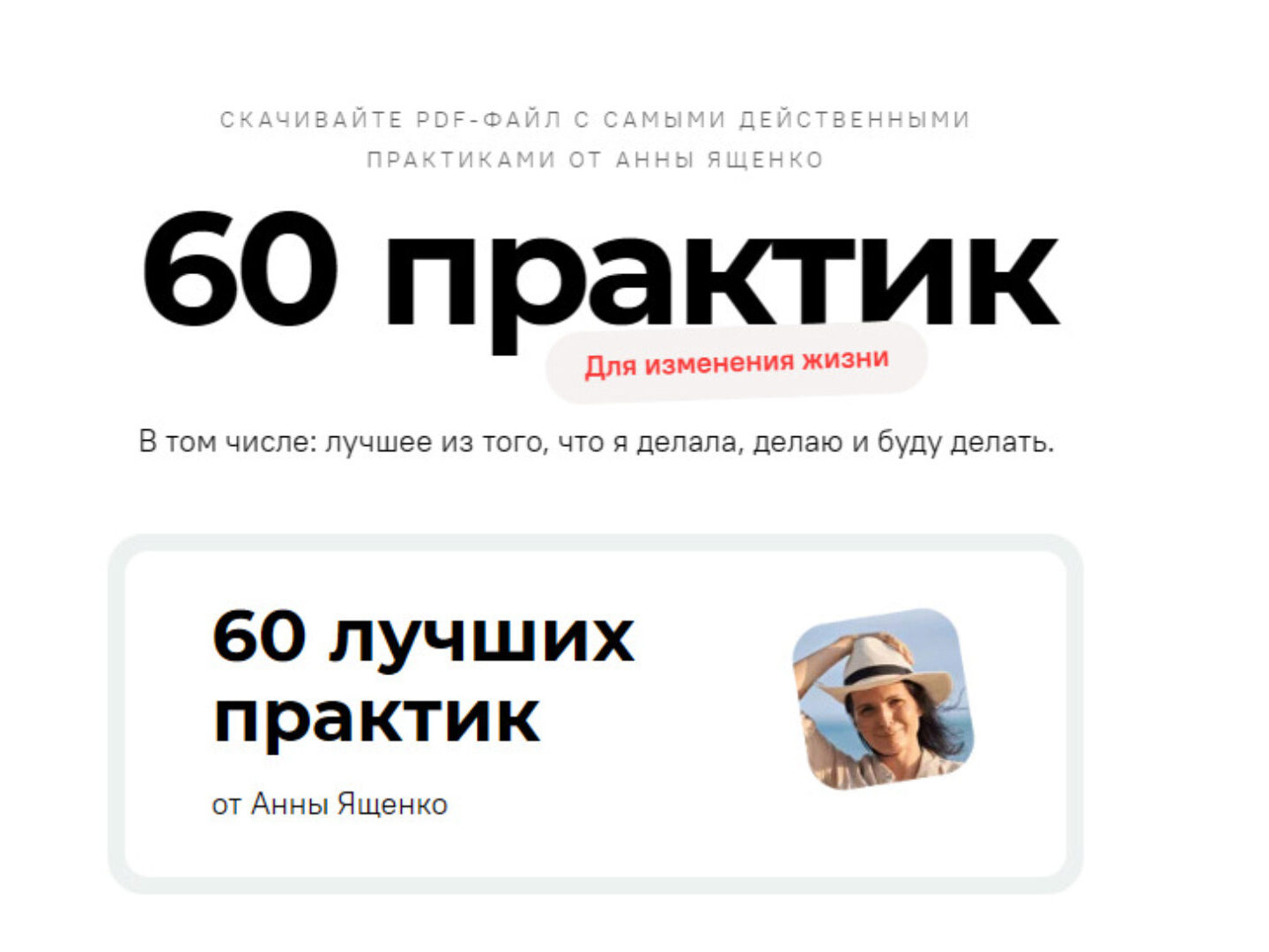 Курс 60 лучших практик для изменения жизни, автор Анна Ященко. 60 лучших практик для изменения жизни Анна Ященко