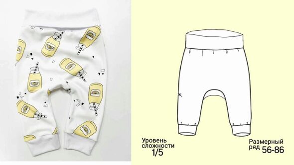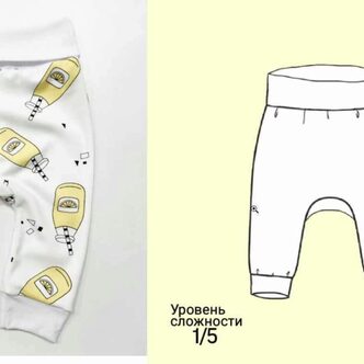 Штанишки из хб кулирки, ластика или интерлока. 5 размеров - 56-62, 62-68, 68-74, 74-80, 80-86. Бонусом идет выкройка распашонки с кнопкой на плече 56 размера.