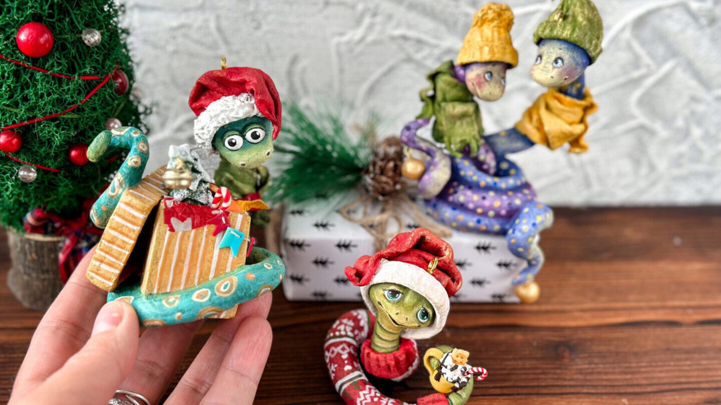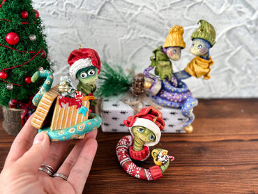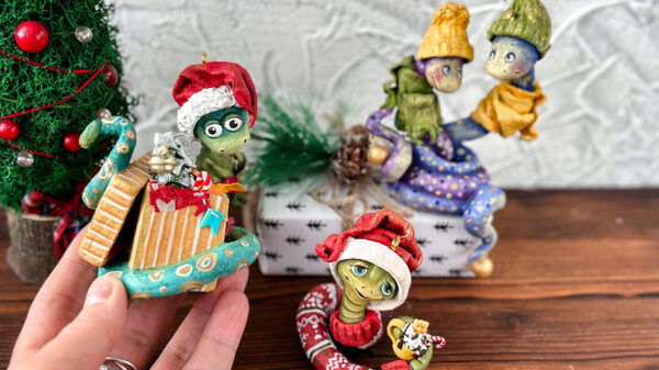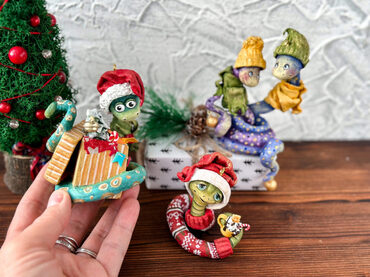 В курсе по Деду Морозу: два рецепта массы, ручная лепка лица, декор ватой, грунтованный текстиль, огромное количество деталей и аксессуаров, подробная роспись. Все пошагово и очень подробно.