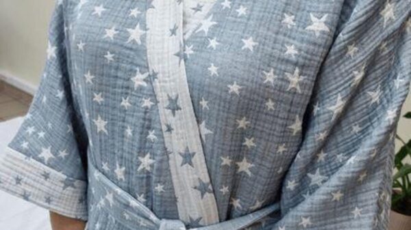 Дополните халатик кантом или кружевом.