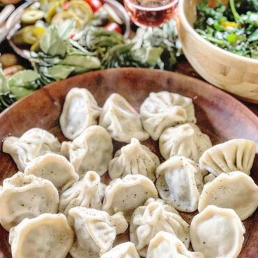 Не забываем попробовать хинкали с грибами, с картошкой, с сулугуни и нежнейшие с надуги