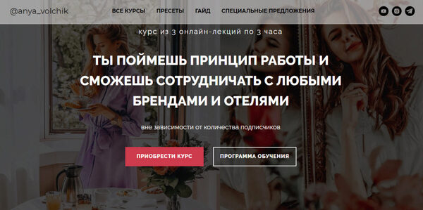 Аня Волчик «Сотрудничество с брендами и отелями. Тариф 2 курс» слив скачать