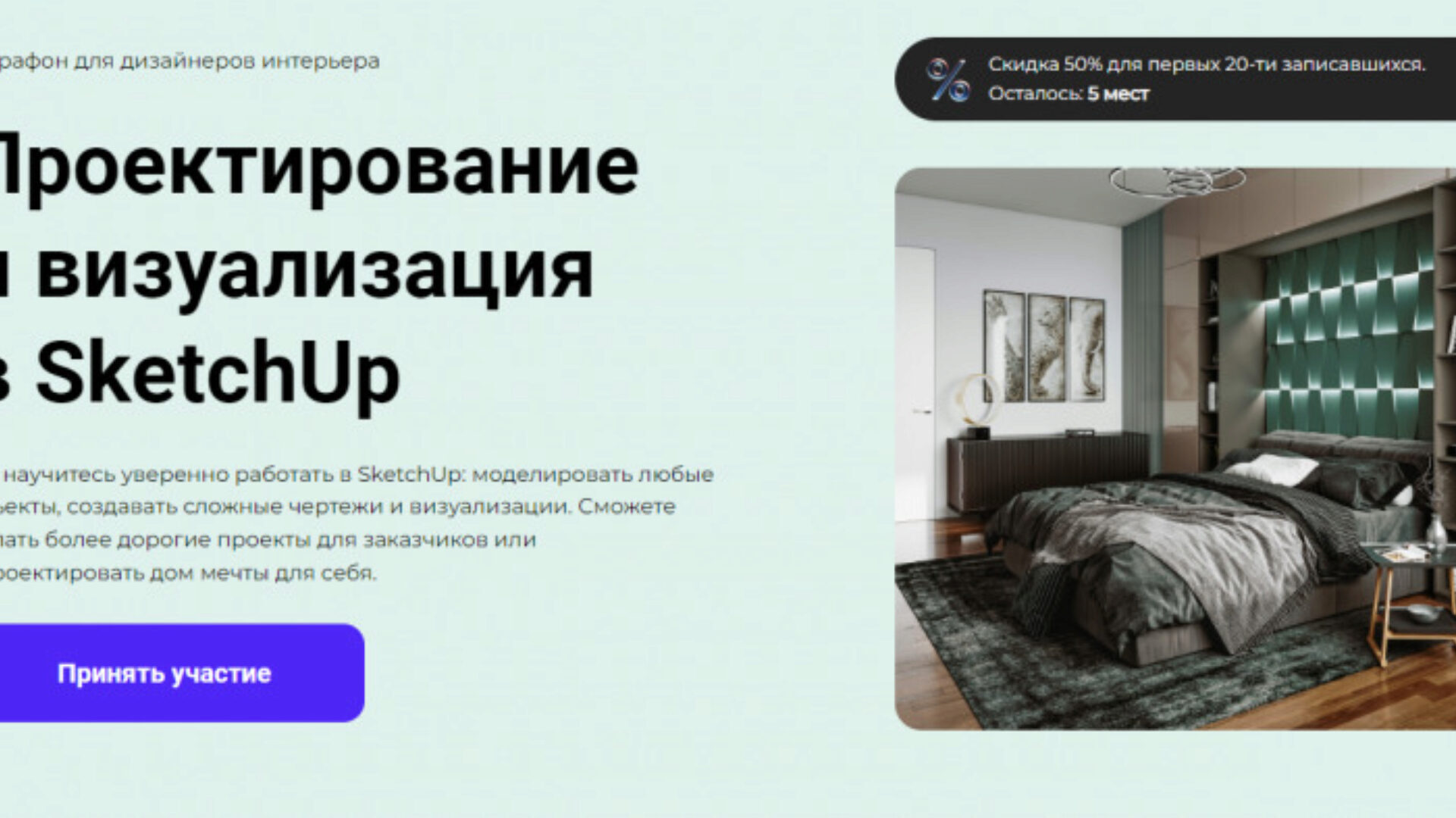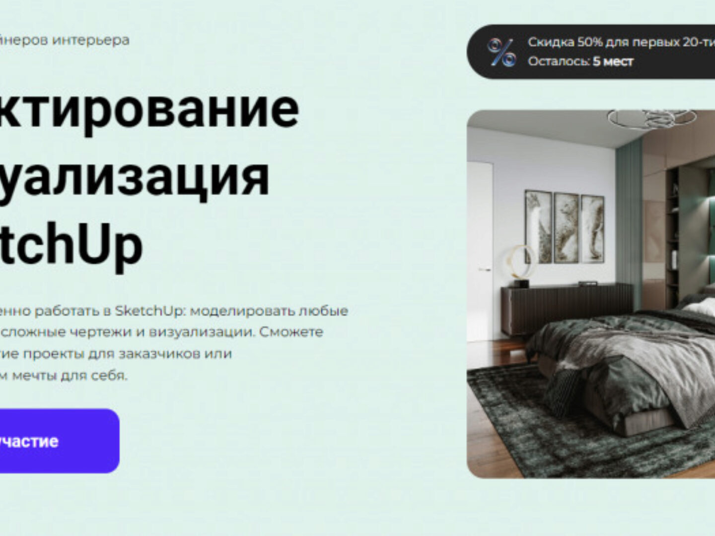 Вы научитесь создавать в SketchUp сложные интерьеры. Сможете презентовать проекты заказчикам с помощью эффектных визуализаций и больше зарабатывать.