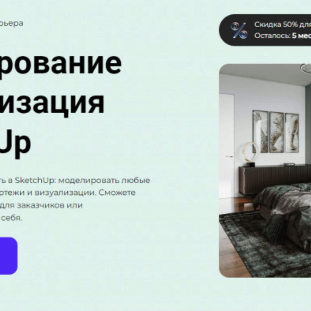Освоите SketchUp на профессиональном уровне и научитесь создавать 3D-модели любых объектов. Добавите крутые работы в портфолио и сможете претендовать на должность 3D-визуализатора в топовой студии.