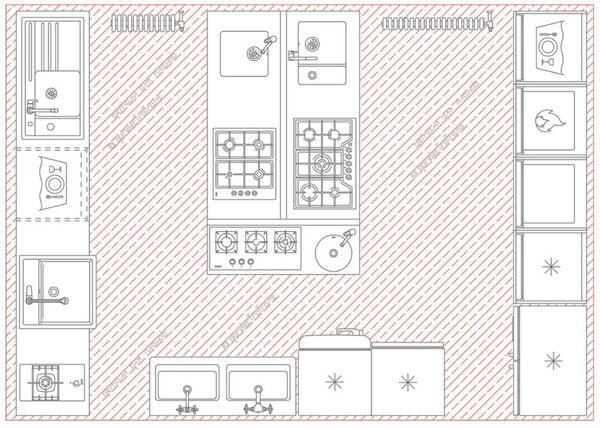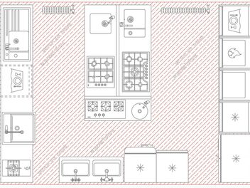 Внутри вы найдёте разнообразные пиктограммы для использования на планах. Разные ванны, раковины, смесители, души, унитазы и тп. Под конец работы, решила добавить и радиаторы нескольких размеров с терморегуляторами. Кухонная техника представлена плитами, холодильниками и другой встраиваемой техникой. В общем, смотрите сами!