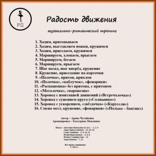 Арина Чугайкина «Радость движения. Музыкально-танцевальный тренинг для малышей» слив скачать