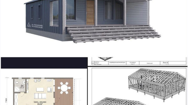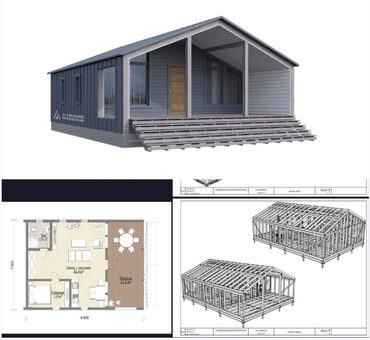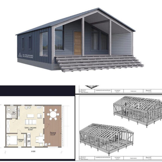 Готовый проект каркасного одноэтажного дома 8,0x9,0 метров Строй и Живи Готовый проект каркасного одноэтажного дома 8,0*9,0 метров В проект входит: 1. Эскизная часть проекта: - Планировки этажей - План кровли - Визуализация дома с разных ракурсов - Фасады с четырех сторон - Разрезы 2.