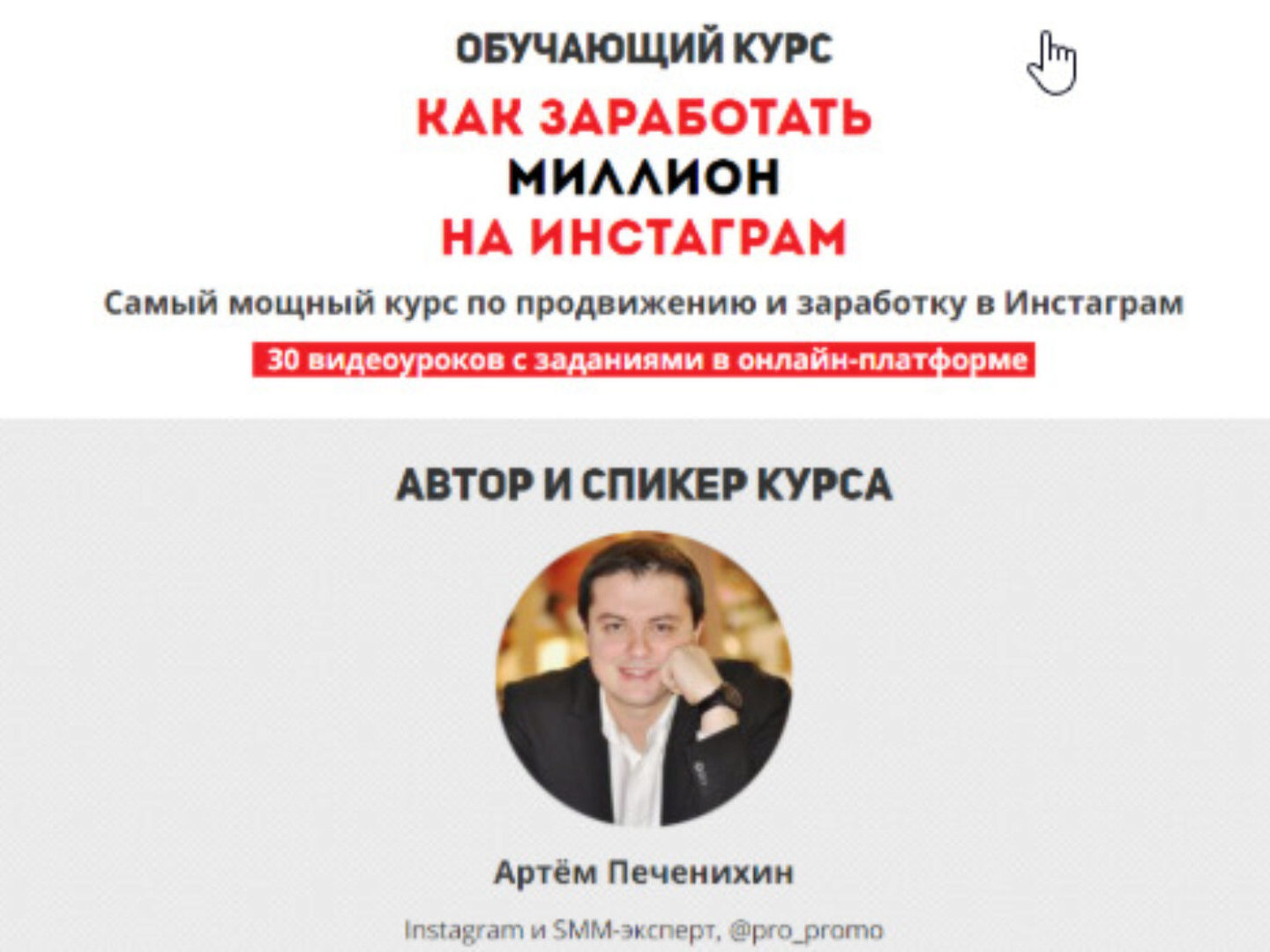 Артем Печенихин «Как заработать миллион на instagram» слив скачать