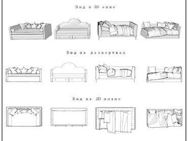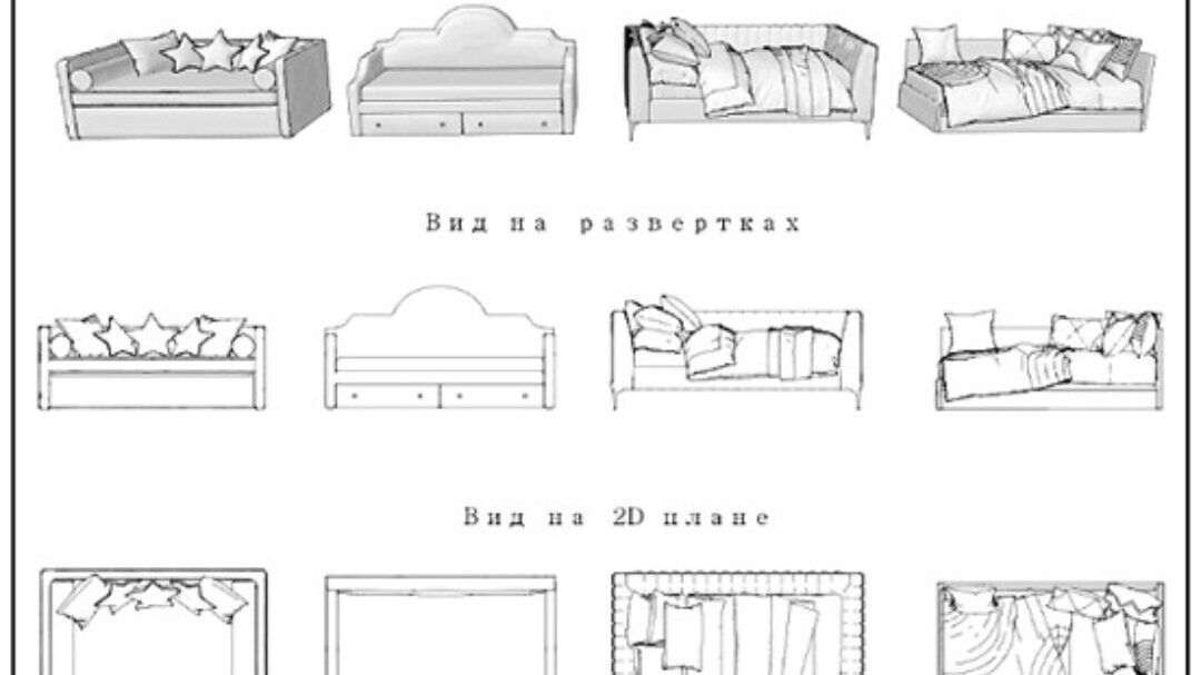 Блок «Спальня» содержит 26 моделей: кровати, тумбочки, мягкая мебель, туалетные столики, оформление окон, освещение и т.д.