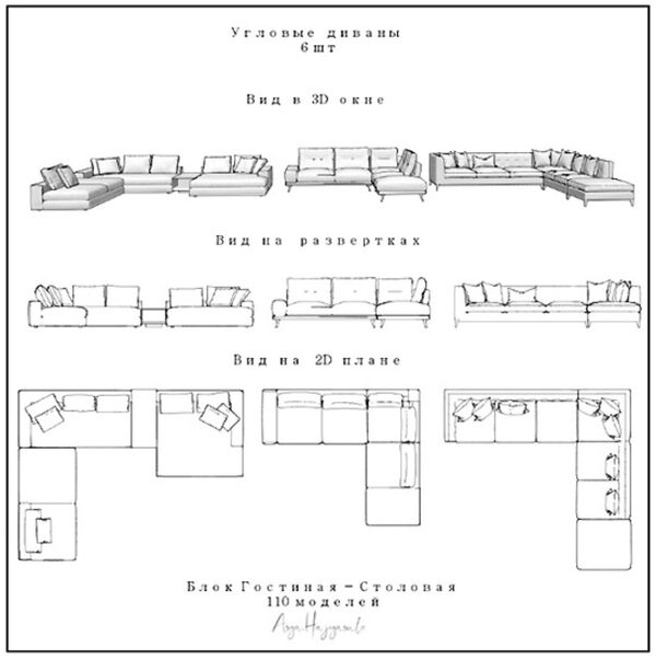 Курс Модели для ArchiCAD. Блок «Гостиная-столовая», автор Асият Гаджиясулова. Блок «Гостиная-столовая» содержит 110 моделей: