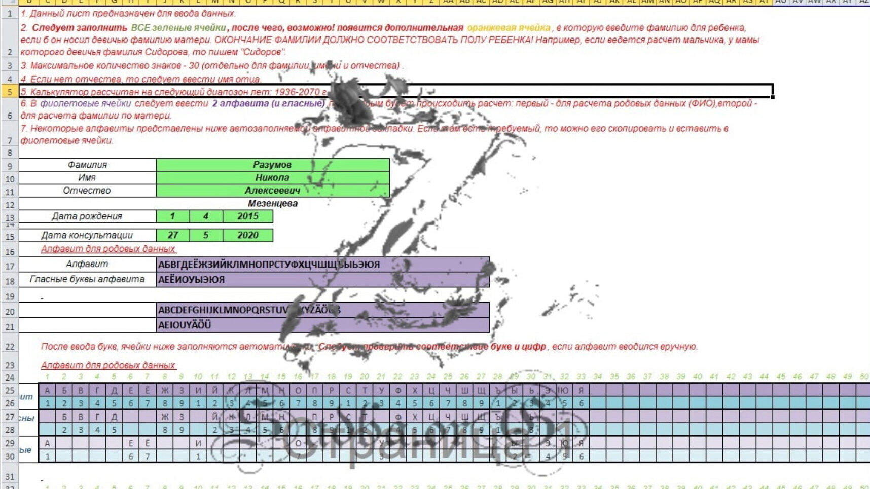 Курс Матрица судьбы - Программа расчета Детской Нумерологии, автор Айрэн По, Джули По. Программа считает с 1936 по 2070 год рождения.