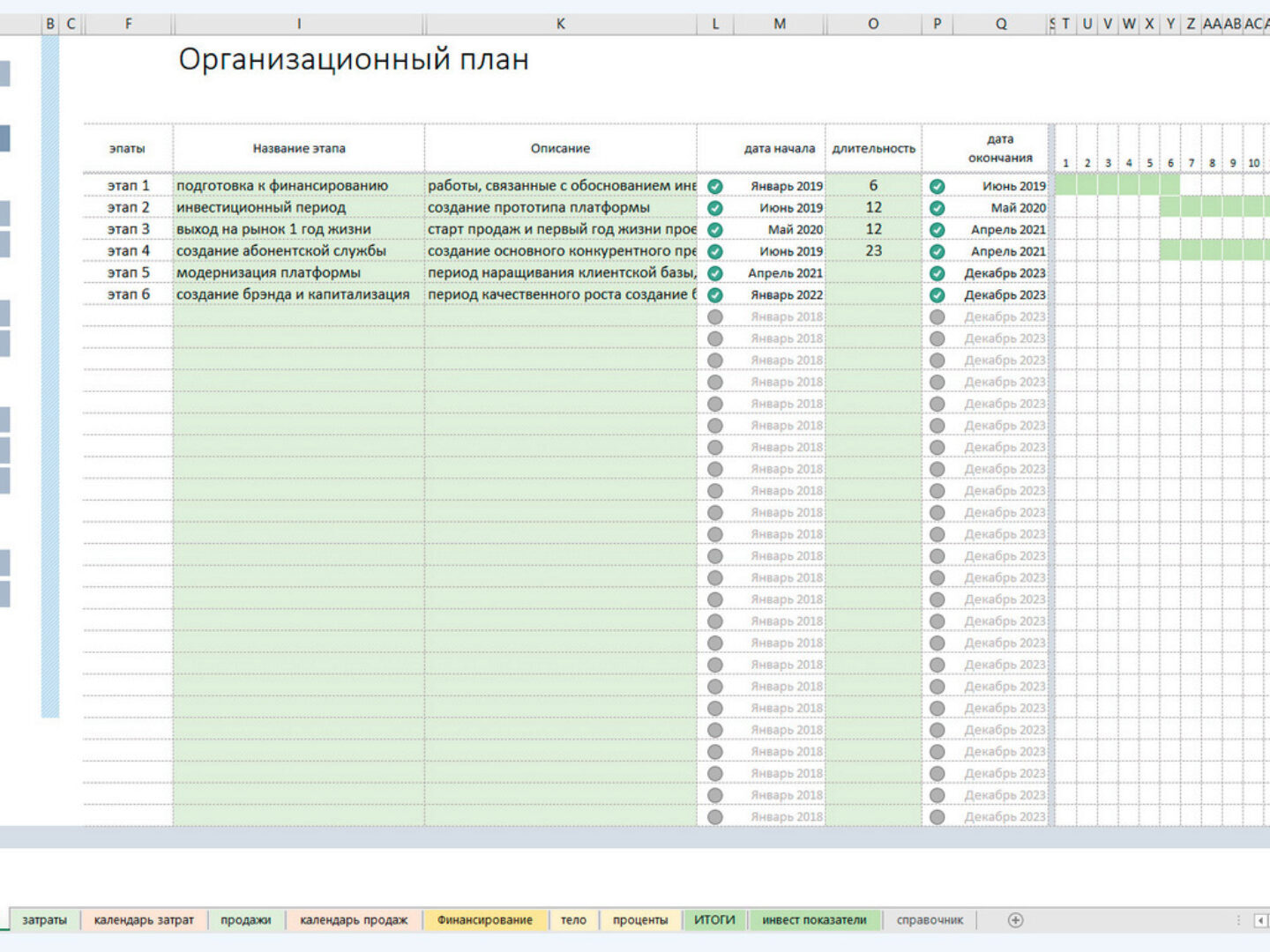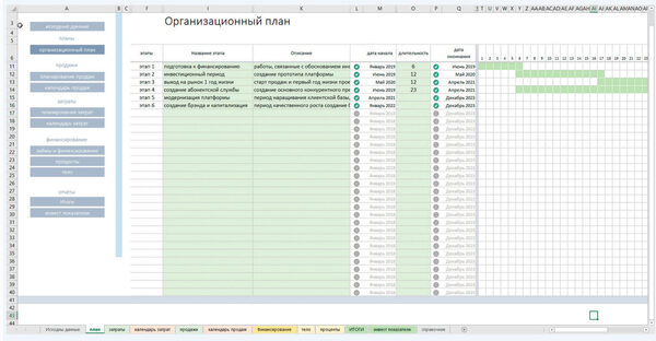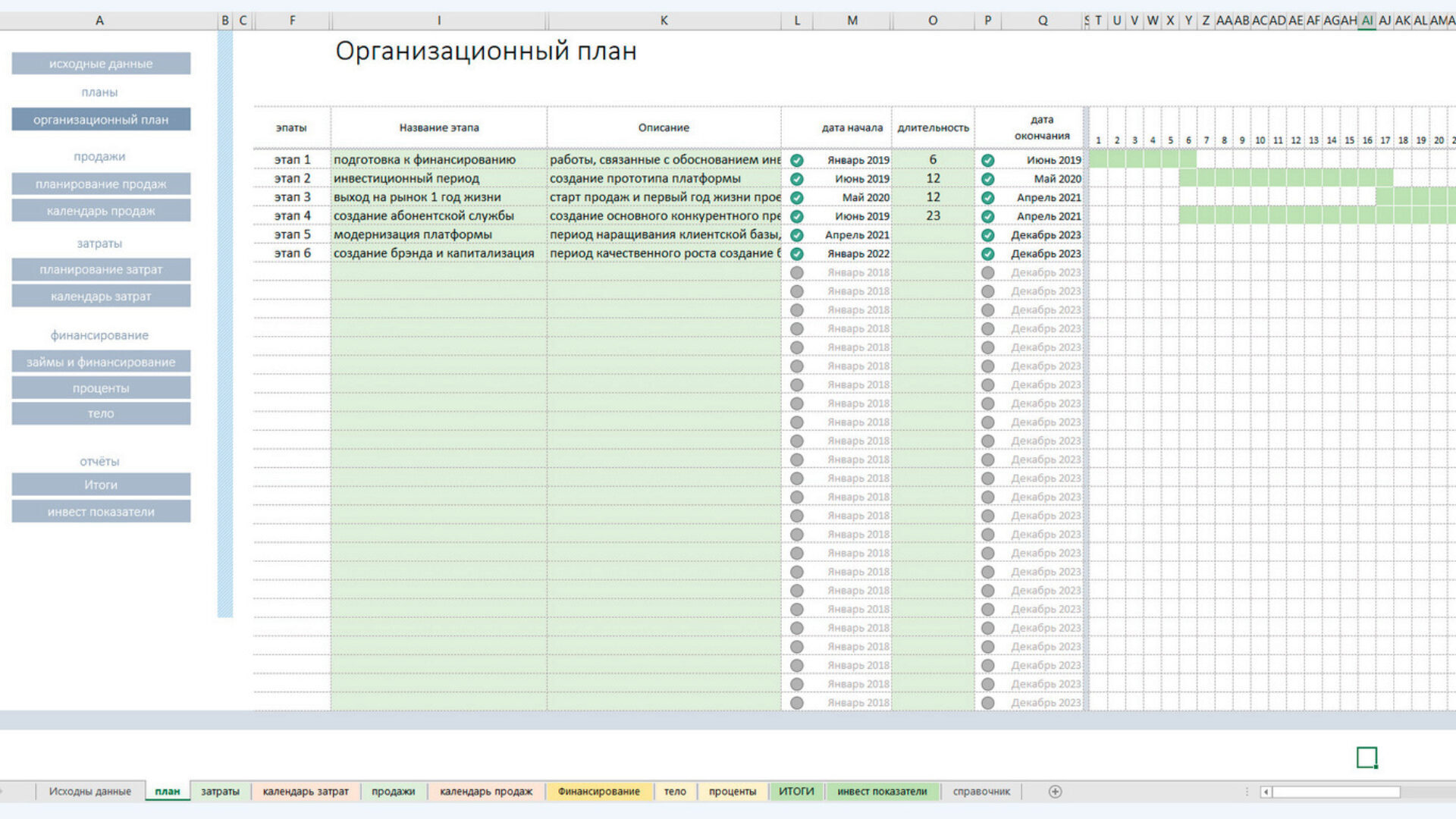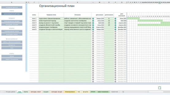 Инструмент для создания поэтапного организационного плана реализации бизнес-проекта, финансового моделирования будущих денежных потоков, и оценки инвестиционной привлекательности.