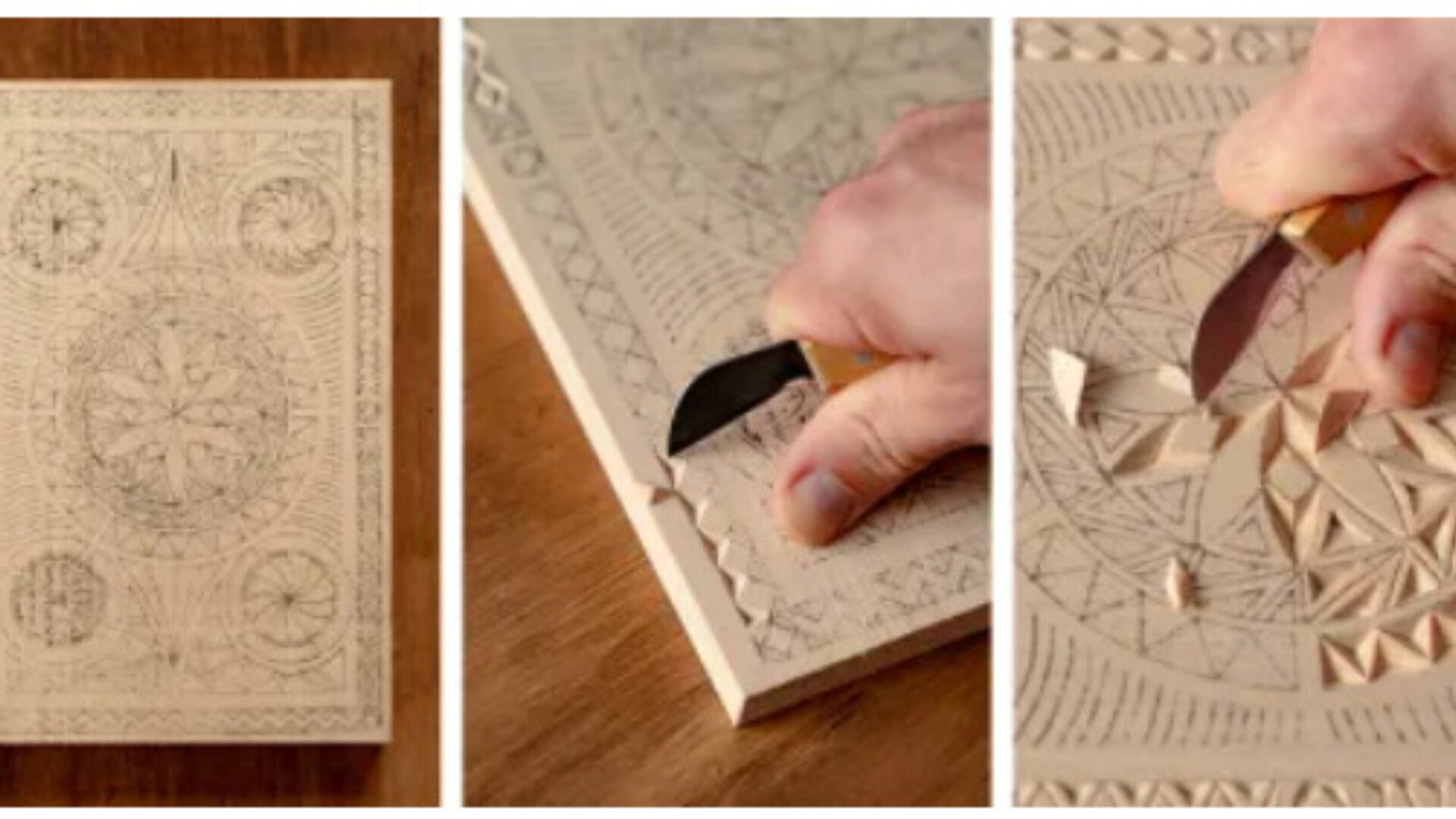Изучите основы резьбы по дереву, чтобы создавать органичные геометрические узоры от первоначального дизайна до окончательного разреза.