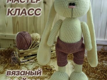 Описание вязания спицами на 4 языках (русский, английский, немецкий, французский) Готовый вязаный кролик стоит 30см / 12 дюймов в высоту (приблизительно) Даны рекомендации по пряже.