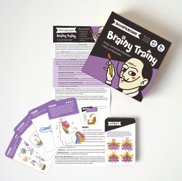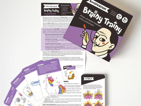 Brainy Trainy «Воображение» не просто учит решать задачи определённого типа. Уникальная методика позволяет развить широкий репертуар компетенций, необходимых для креативного творческого мышления. В результате у ребёнка формируется целостный подход к решению любых задач: в том числе тех, с которыми он не сталкивался ранее.