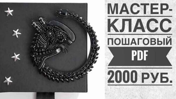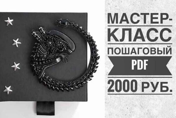 • В этом мастер-классе вы научитесь вышивать бисером различными способами, создавать каркасные элементы с помощью пинов, работать со всеми видами канители, обшивать край броши пайетками, узнаете секреты сохранения формы хвоста, создания кожаной головы и руки.
