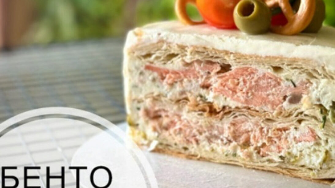 Бенто Суши торт с креветкой, икрой масаго и кремом Спайси