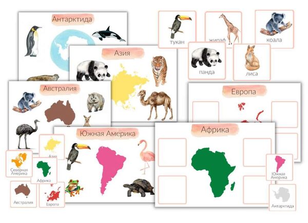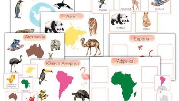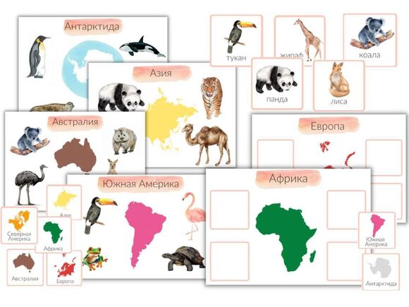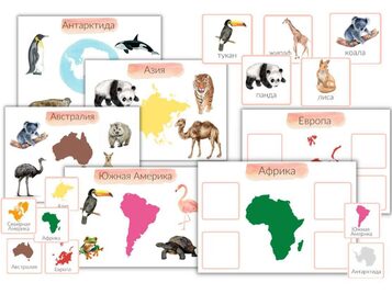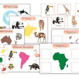 Занятие для первого знакомства ребенка с континентами и животными, обитающими на них.