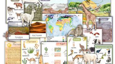 -Карточки с животными разных природных зон 10 карточек (всего 44 животных)