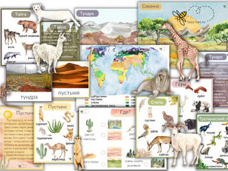 -Рисунки природных зон для аппликаций 10 штук + 44 животных