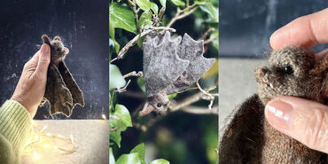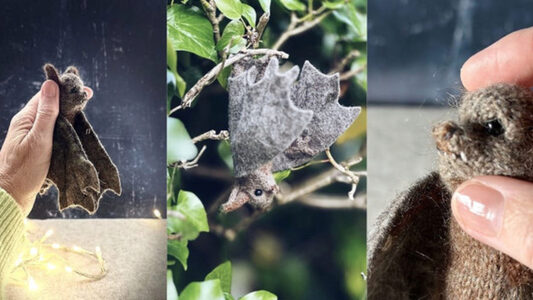 Летучая мышь от Клер связана почти цельно (как и все её животные), и она остановила свой выбор на простой в пошиве паре крыльев из фетра.… Фетр получился настолько идеальным для крыльев летучей мыши.