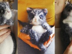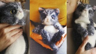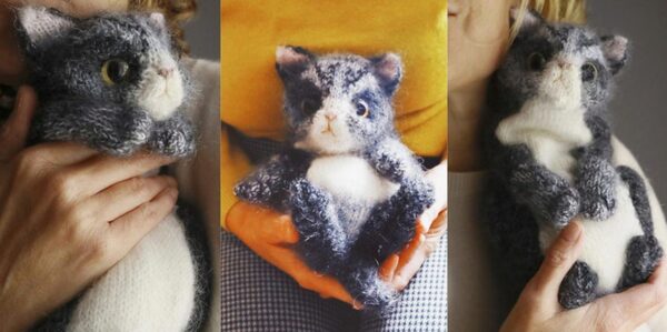 Этот котёнок связан так, что его можно использовать для фото-проектов, его можно наряжать. В это описание включены инструкции по вязанию накидки с капюшоном. Весь котёнок вяжется одной деталью, с небольшими швами во время вязания. Очень важно использовать пушистую пряжу, такую как мохер и альпака, чтобы котёнок получился таким же реалистичным, и конечно правильно выберите глазки.