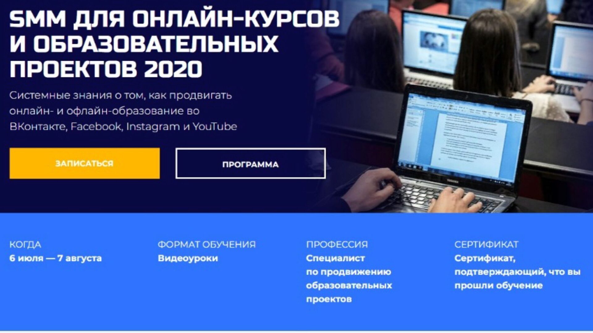 - Продвижению онлайн-курсов и образовательных проектов во Вконтакте, Facebook, Instagram, YouTube
