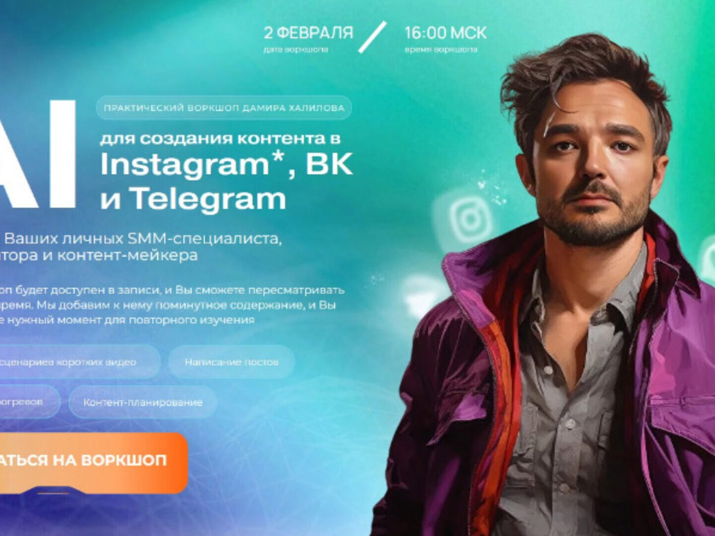 Дамир Халилов «AI для создания контента в Instagram, ВК и Telegra. Тариф Gold» слив скачать