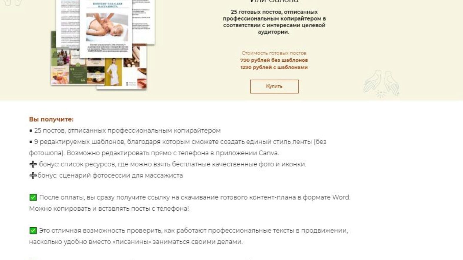 После оплаты, материалы курса «Готовые посты для массажиста или салона» приходят на Ваш email.