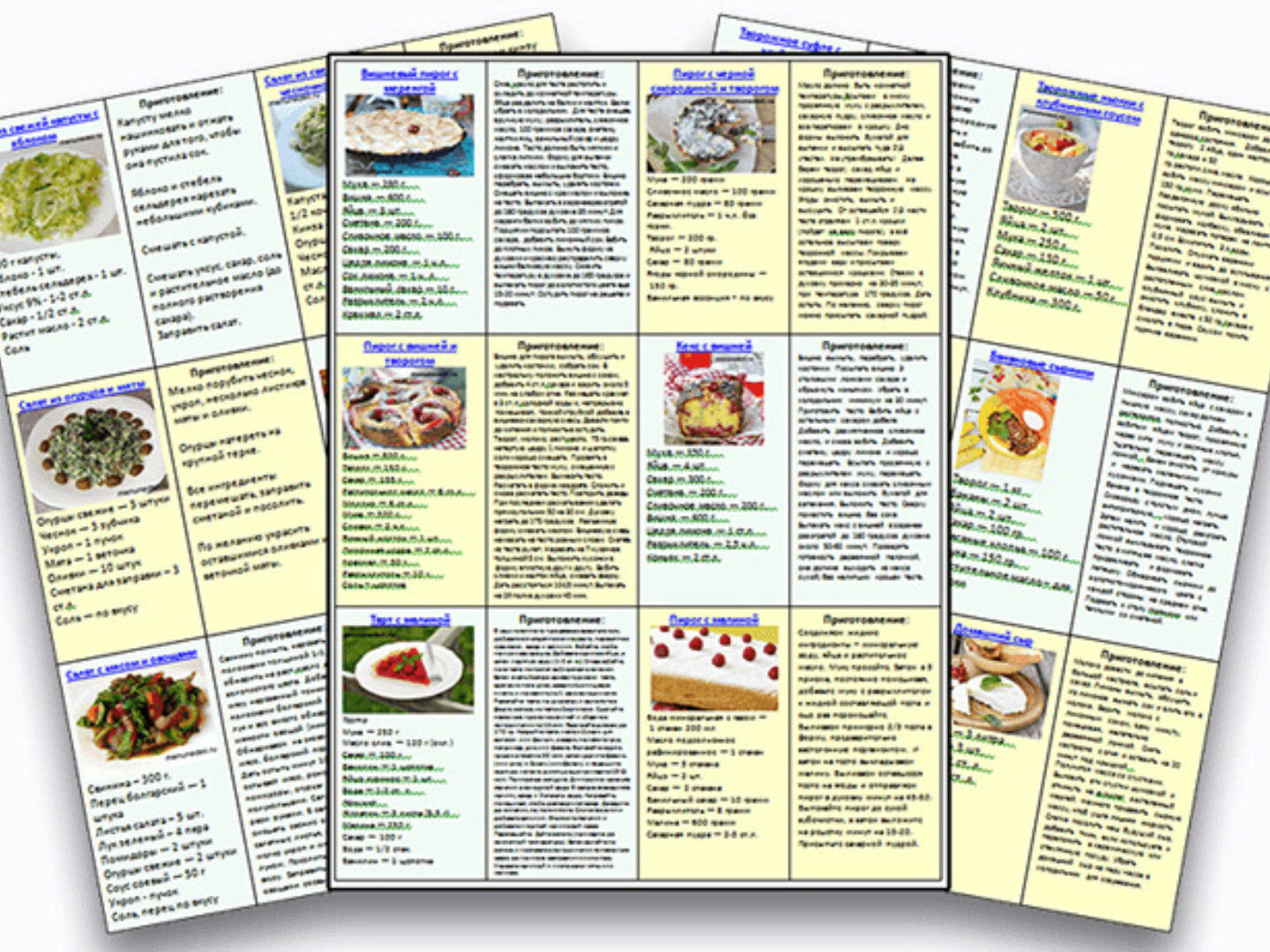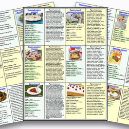 Карточки с рецептами для составления меню 924 шт Хотите составлять меню, но не хотите чертить и заполнять таблицы, писать списки и мучительно вспоминать, что вписать в очередную строчку напротив дня недели? Вам нравится идея ходить в магазин со списком покупок, но не нравится каждый раз этот список