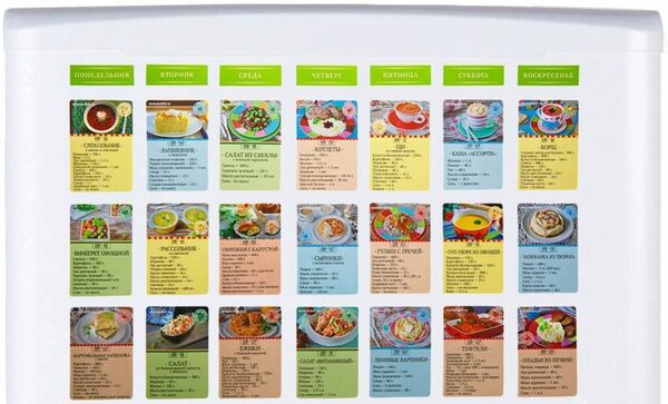 Курс Меню недели - Карточки с рецептами на холодильник. Обычное меню, автор Дарья Черненко. Карточки с рецептами на холодильник. Обычное меню