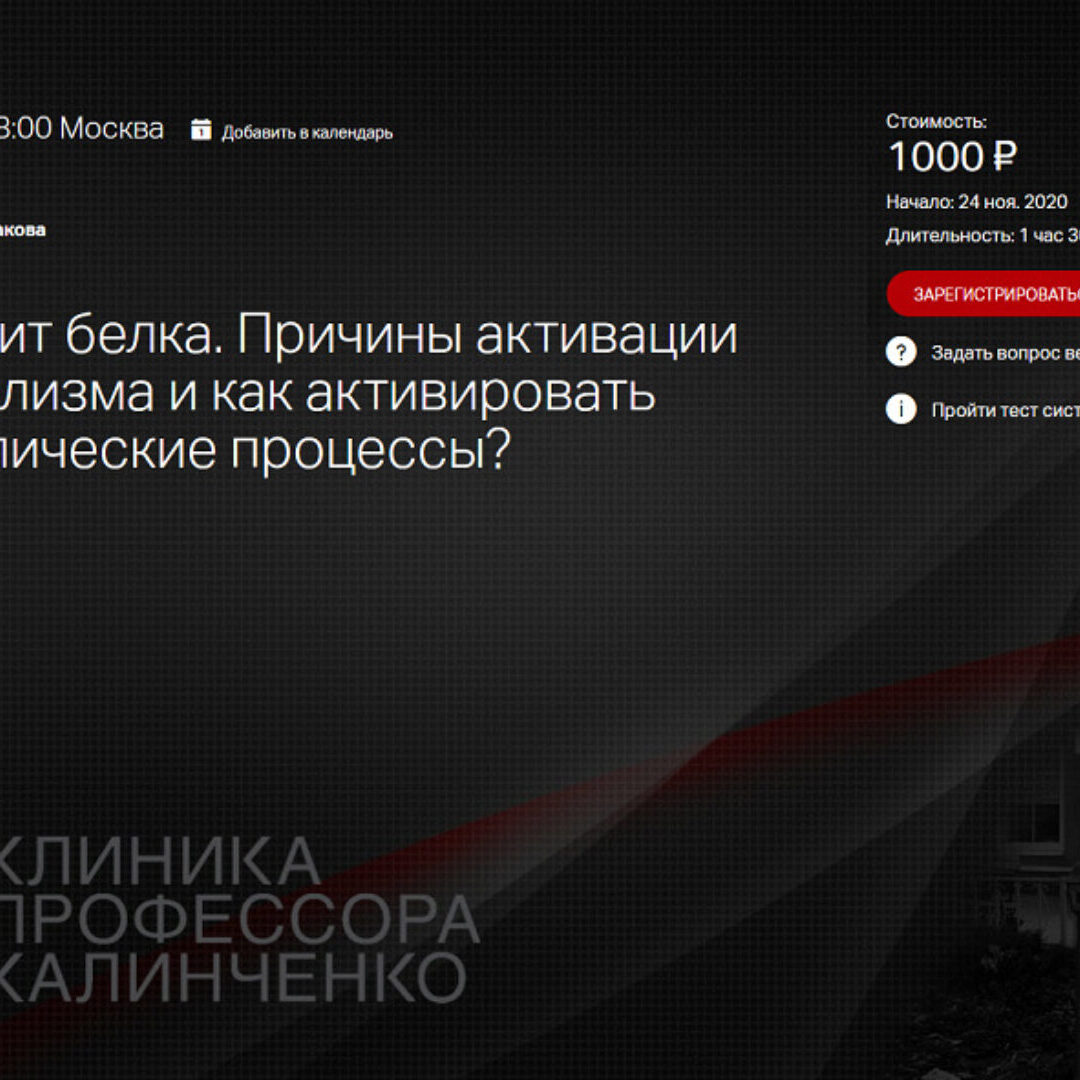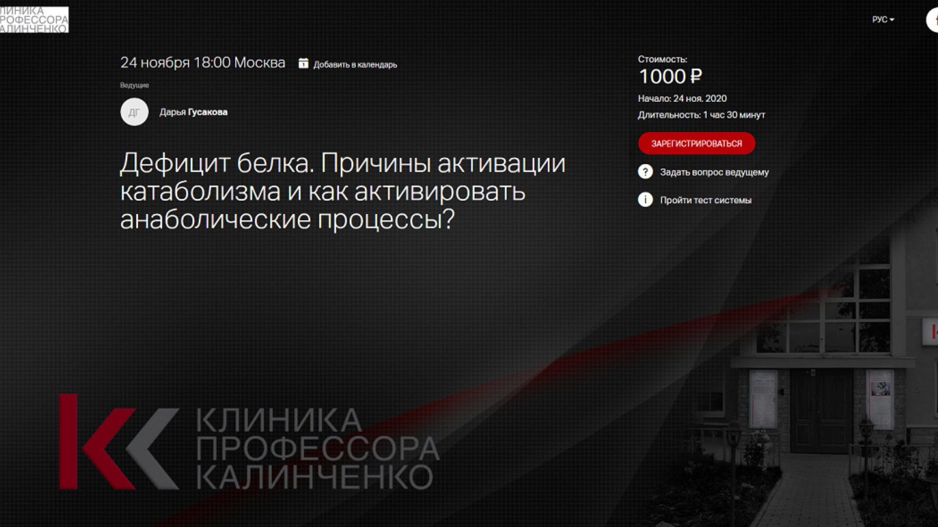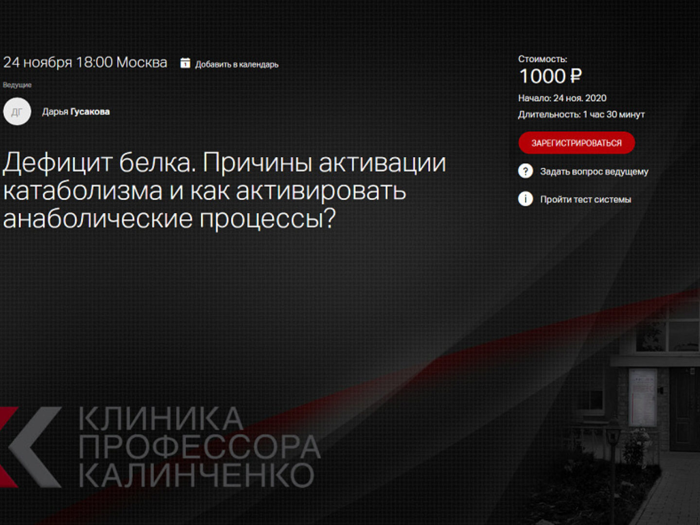 Дарья Гусакова «Дефицит белка. Причины активации катаболизма» — Клиника Калинченко слив скачать
