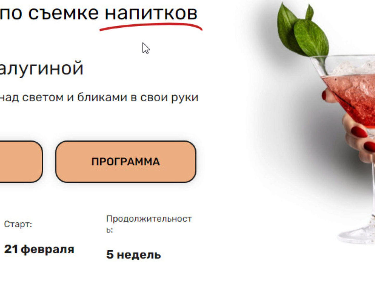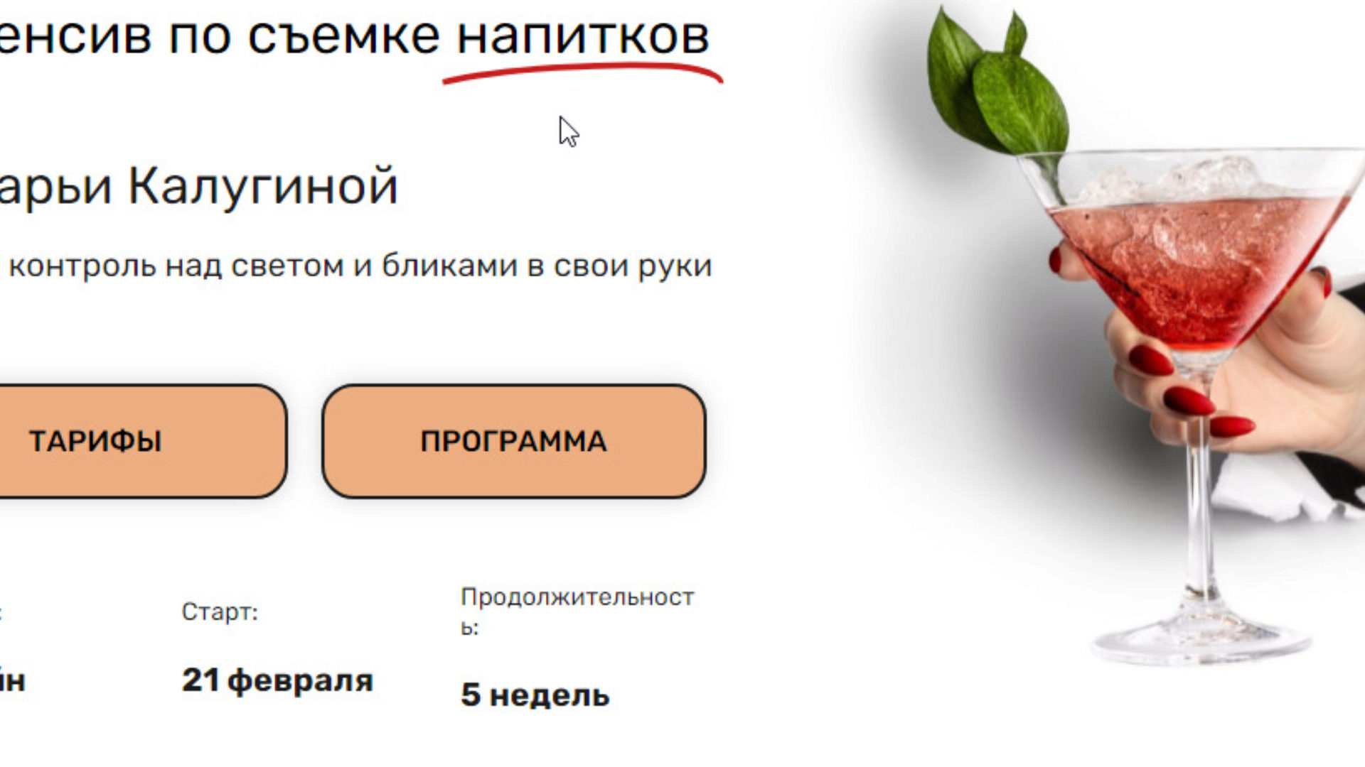 Отзывы о курсе «Интенсив по съемке напитков» от Дарьи Калугиной