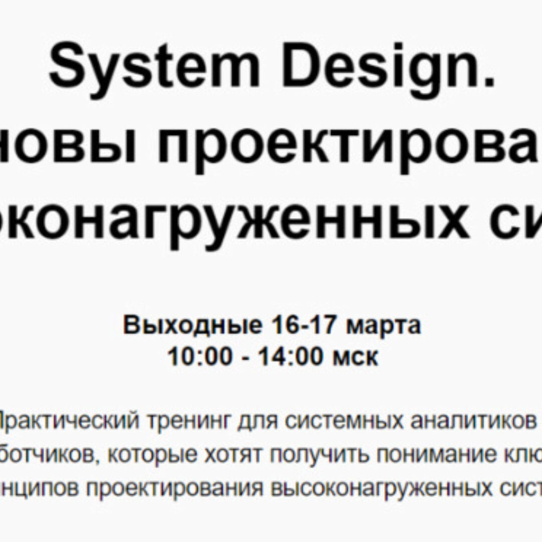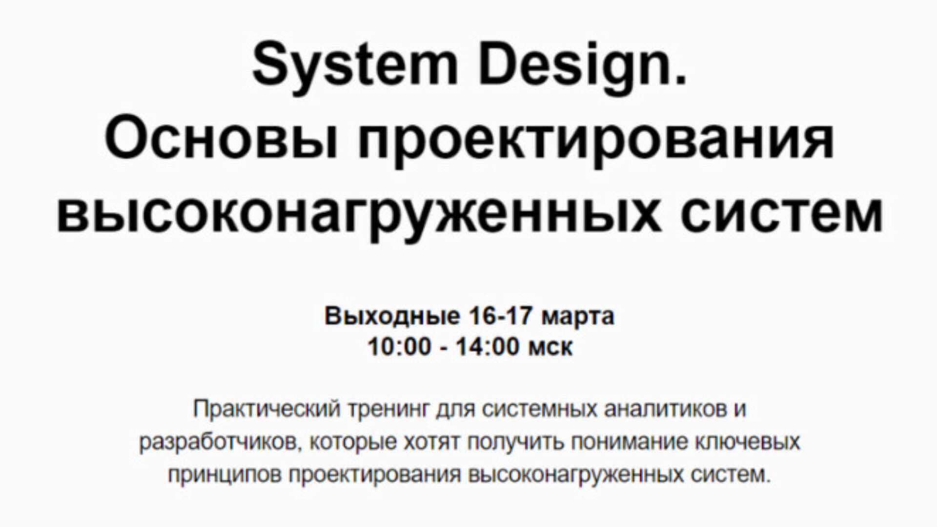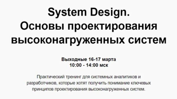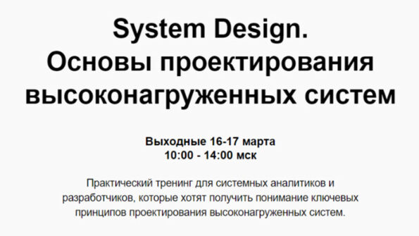Практический тренинг для системных аналитиков и разработчиков, которые хотят получить понимание ключевых принципов проектирования высоконагруженных систем.