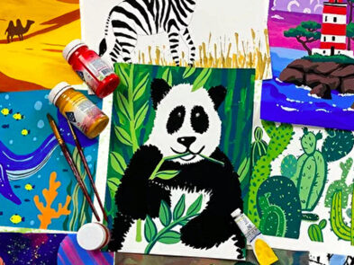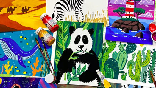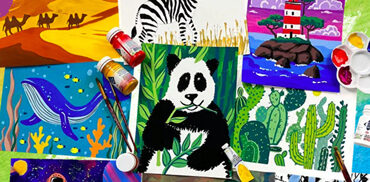На занятиях мы будем работать с композицией и цветом, научимся рисовать гуашью растения, пейзажи и животных, показывать настроение персонажей и их характер.