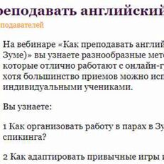 А знаете, что? Приходите на вебинар «Как преподавать английский онлайн группам (в Зуме)» в воскресенье, 15 декабря, в 12.00 (МСК)!