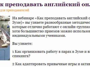 Об этом мы и поговорим на вебинаре «Как преподавать английский онлайн группам (в Зуме)». Вебинар будет полезен и тем, кто уже, и тем, кто еще не...))