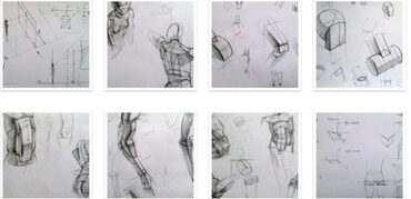 Кости и мышцы образуют определенные геометрические фигуры: примитивные конусы, шары и цилиндры. Законы геометрии и перспективы, которые на них действуют, применимы и к человеку.