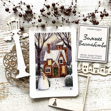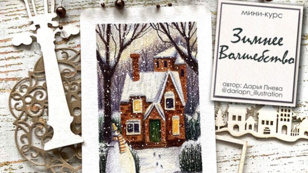 Видеокурс « Новогодние открытки» В этом курсе мы познакомимся с карандашными техниками и нарисуем три открытки на новогоднюю тему. На курсе мы обсудим работу именно на маленьком формате (чем он отличается от большого формата), подберем цветовую гамму, порисуем не только на белой бумаге, но и на