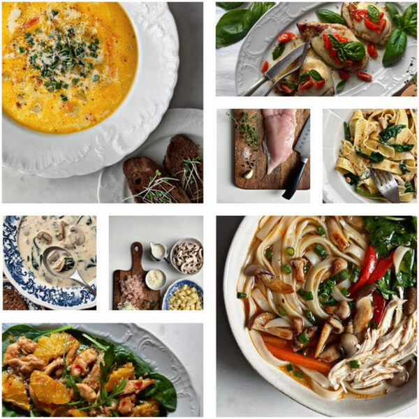 В стиле лакшери-эконом на каждый день, в котором вы элегантно расщепляете одну куриную грудку на 3 блюда сразу: суп, второе и закуску. Там паста, рис, картошки, тарты, супы, бутерброды и салаты с НЕЙ.