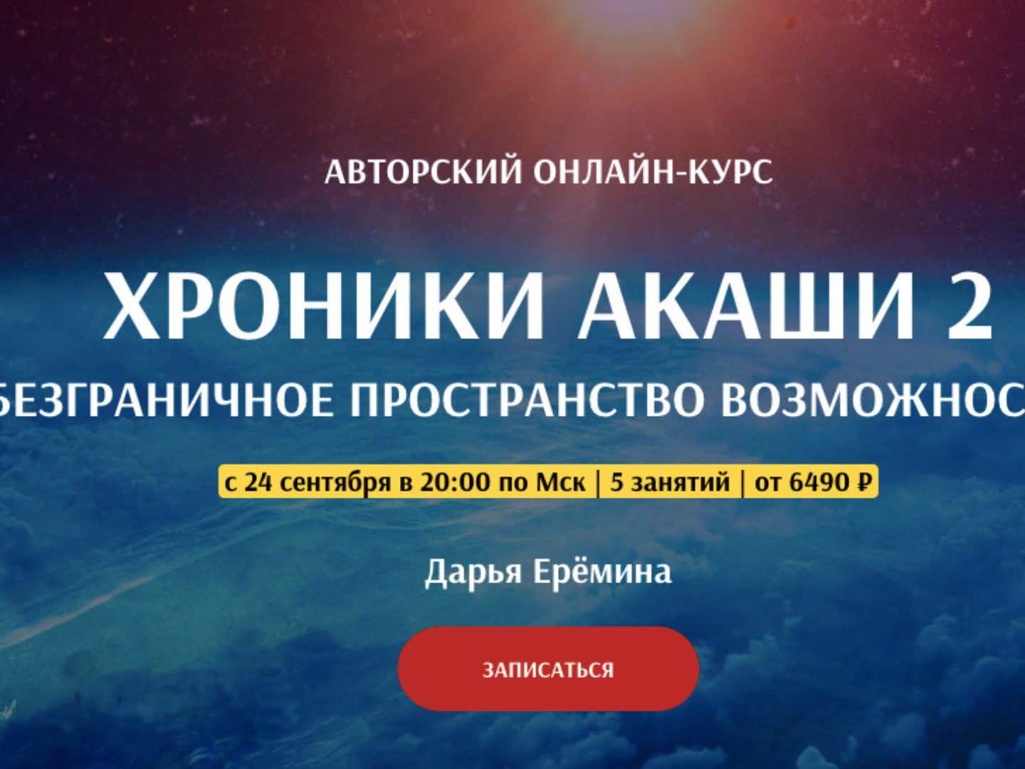 Трансформация жизни через Хроники Акаши На этом практикуме Вы: - получите ответы на Ваши важные жизненные вопросы по поводу Миссии и Предназначения Души, отношений, денег и процветания, здоровья - установите прочную связь с наставниками своей Души. Научитесь получать доступ к необходимой Вам