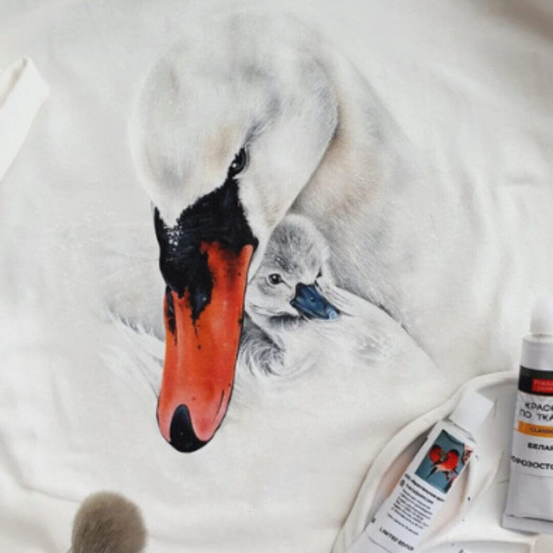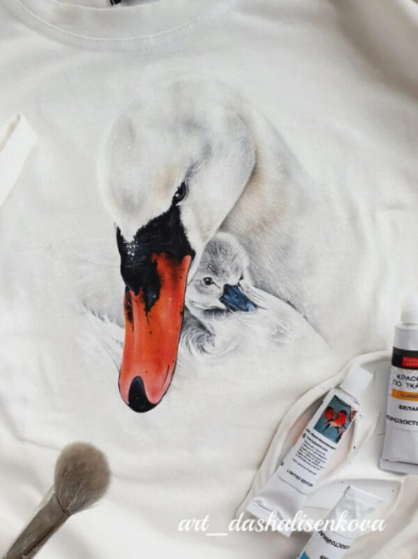 • МК белый лебедь на белой футболке