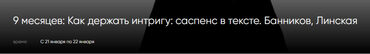 Отзывы о курсе «9 месяцев: Как держать интригу - саспенс в тексте» от Дениса Банникова, Анны Линской
