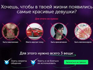 За 3 недели ты научишься эффективно знакомиться и переписываться онлайн с лучшими девушками, затрачивая минимум времени и усилий Узнаешь и поймешь: Что представляют из себя приложения/сайты знакомств, как они работают, зачем туда люди приходят Какие девушки и зачем туда приходят, какие потребности