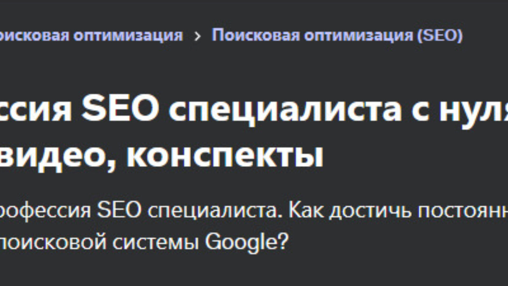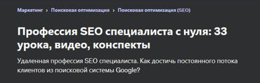 Онлайн курс «SEO для начинающих» создан на базе успешно зарекомендовавших себя обучающих программ учебных заведений. Он усовершенствован и адаптирован для онлайн обучения. Курс является авторской разработкой для глубокого и детального изучения основ SEO. Он подойдет для желающих обрести новую профессию в сфере диджитал маркетинга с нуля.
